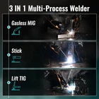 MIG Welder, 110V Flux Core MIG Welder/Lift TIG/Stick 3 in 1 MIG Welding Machine, 7GEN Synergy Single Phase Flux IGBT Welder Digital Screen Display 3-IN-1 welder: The MIG145 MIG welder has multi-function for Gasless Flux Core MIG, Lift TIG and Stick. Maximum current is 135 amps, supporting gasless flux-cored mig wire, and can use "/"/" wire size. The flux core welder excels in welding stainless steel, carbon steel, and even thicker steel, meeting diverse welding needs. Digital Screen Display: We design this MIG welding machine with full new technology. MIG welder 110v with LED digital screen display voltage, current, and other parameters. You do not need to remove the helmet to assess the equipment status. You can make real-time adjustments, enhancing efficiency and accuracy. Synergic Control: The 3 in 1 welder adopts IGBT and integrated wire feed technology to automatically match the recommended voltage and wire feed speed (current). At the same time, the user can also press the adjustment knob to individually adjusted the voltage±3V, making it accessible to both beginners and professionals. 110V Single Phase: The gasless mig welder supports 110V voltage, automatically identifying the input voltage, and clearly display through the front panel indicator. The MIG torch is ft long (Included torch head), which is enough length for the operator to easily move around the welding area. The weighs just 13 pounds and comes with a shoulder strap for easy carrying and outdoor use. Package Includes: 1×MIG145 MIG welder machine, 1×MIG torch, 1×Earth clamp, 1×Stick holder, 1×" Flux cored wire, 1×"/"/" Contact tip, 1×"/" Wire feed rollers, 1×Shoulder strap, 1×User manual.