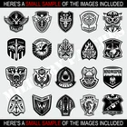 Product Description: 114 rare and original MILITARY PATCH images on CD-ROM plus 100 bonus images . CD-ROM includes a printable PDF catalog of all the images included in this collection. Looking for sample images? Please see the main product photos above. Features: All images are "sign ready" (artwork is optimized for cutting and for sign making production). Images are detailed and very realistic. Each image is hand drawn to perfection. All images require no clean-up and can be scaled to any size without distortion. Images are specifically designed for all sign making industries and equipment. Images are compatible with all major design, sign making, engraving and other programs. CD-ROM and images are compatible with all Windows and Mac operating systems. These images are a wise and affordable investment. A small price to pay for unlimited profits. These designs will pay for themselves over and over. All Sign Ready products are user friendly. All artwork is royalty free . Vector File Formats Included: EPS (EPS 8 format) AI (Adobe Illustrator 8 format) JPG (3000 x 3000 pixels at 300 dbi) CDR (CorelDraw 7-X7 native images) SVG (Standard XML-based vector image format) PNG (2000 x 2000 pixels at 300 dbi with a transparent background)