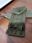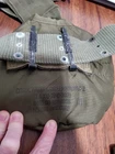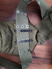 Military smaller bag, approximately 11×11, all the buttons & hardware are all tarnished, greenish, probably due to weather, some stains, writing & wear on all items, as is, as pictured, no returns. Shipped USPS