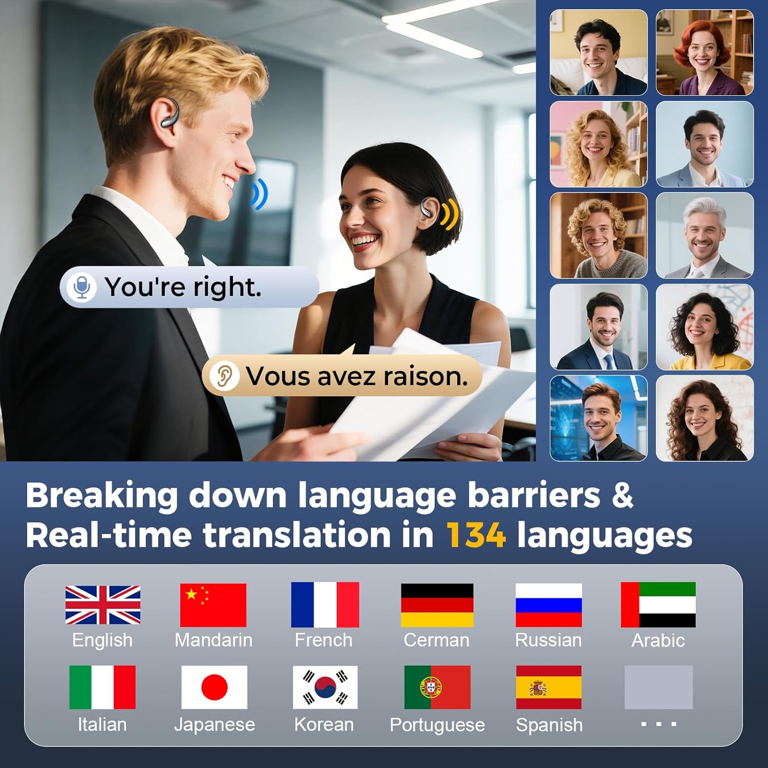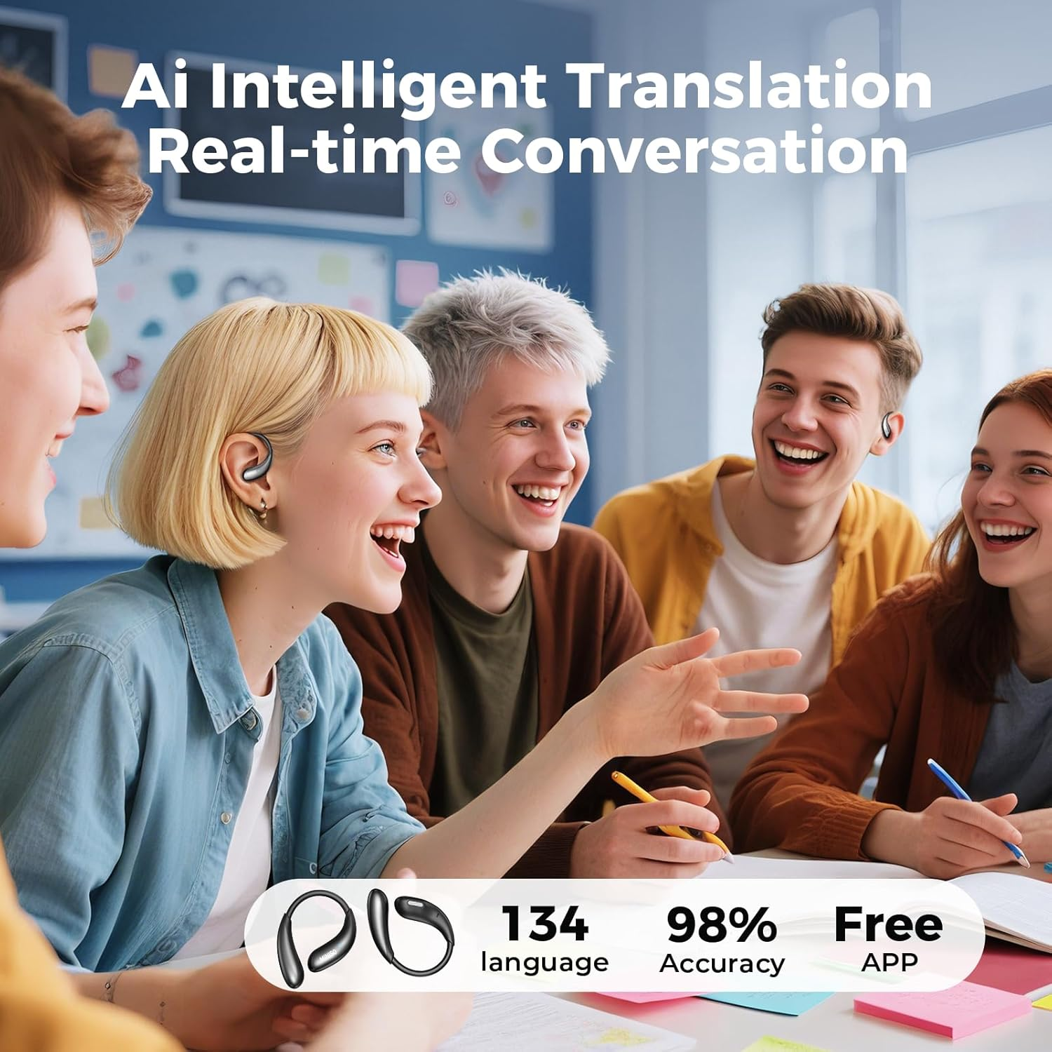 【Instant Translation in 134 Languages】This translation earbuds support real-time two-way translation in 134 languages, covering mainstream languages such as English and Japanese, as well as lesser-known languages such as Thai and Vietnamese. Whether you are on a business trip meeting with clients, traveling abroad and asking for directions, or helping elderly family members communicate with foreign doctors, all you need to do is put on the earphones and start talking. It makes cross-cultural communication as easy as chatting with a local. 【3-in-1 Translator Earbuds】The Ear buds combine three key features into one: high-definition calls, music playback, and real-time translation. Equipped with 15mm titanium-coated diaphragm drivers, they deliver crystal-clear voice quality during calls. They reproduce Hi-Fi-level audio quality with powerful bass and clear mid-to-high frequencies. Featuring a futuristic streamlined body design and a metallic finish, it effortlessly complements trendy outfits, serving as both a cutting-edge tech tool and a stylish accessory. 【5 Smart Modes for All Occasions】 With just one click, the AI translation earbuds can switch between five super-useful modes: AI conversation mode, free speech mode, translation mode, earbud + mobile phone mode, and photo translation mode. Whether you are traveling around the world asking for directions or ordering food, taking online classes and taking notes, or attending international conferences, these earbuds can provide you with comprehensive support. They are your all-in-one solution for any language scenario. 【48-Hour Ultra-Long Battery Life】When paired with the charging case, the translation earbuds offer a total battery life of up to two days, so you never have to worry about running out of power. Whether you're on a long-haul international flight, a European vacation, or out all day, you can handle it with ease. The charging case also features a digital battery level display, allowing you to quickly check the remaining battery life at a glance. No more worrying about your wireless Bluetooth earbuds suddenly running out of battery and ruining your plans. It lets you use them all day long, saying goodbye to battery anxiety. 【Open-Ear Headphone Design】The headphones feature skin-friendly silicone and an open-ear design, making them compact and lightweight. They sit comfortably on your ears without causing discomfort. You can wear them all day without feeling any pressure. The open-back design does not block your ears, allowing you to clearly hear traffic sounds while walking, enhancing safety. Whether for translation or music, these headphones perform exceptionally well. The built-in high-fidelity speakers deliver deep bass and clear vocals. You can enjoy both music and clear translation dialogue simultaneously. No matter where you are, it feels like you have your own private concert. MINISO MS206 AI Translation Earbuds Real Time,3-in-1 Translator Earbuds with 134 Languages,Online Translation Headphones fit iPhone & Android,Suitable for Travel, Business, Learning