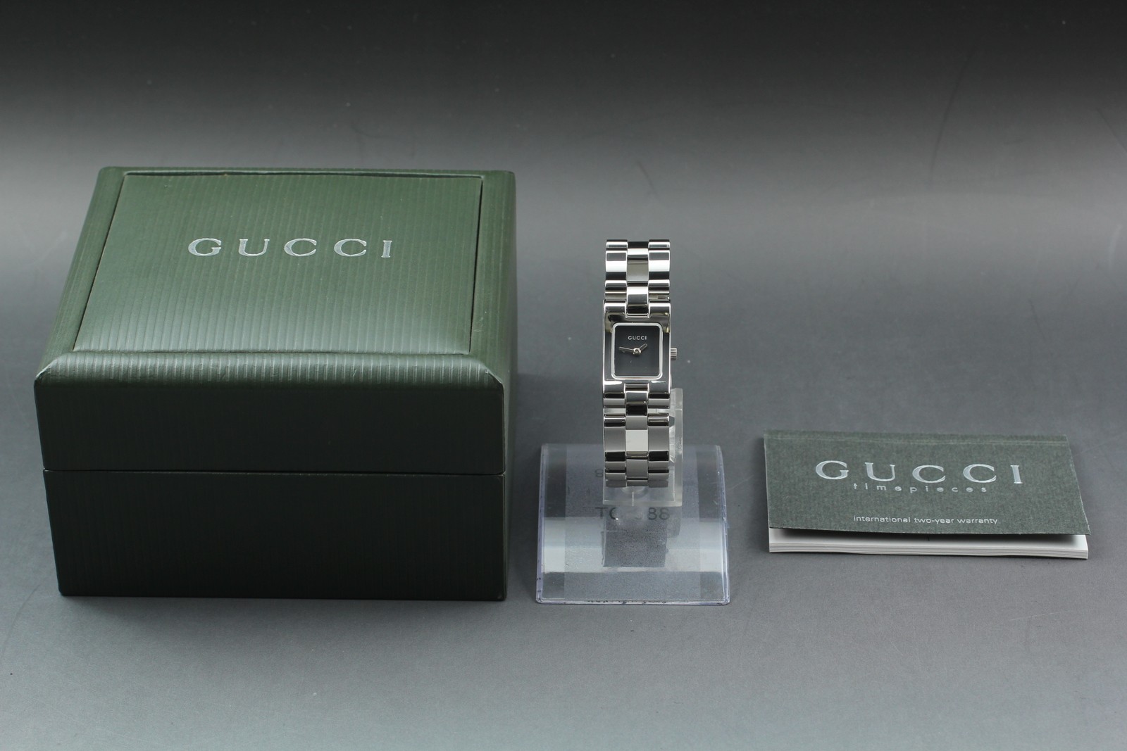 [MINT W/Box] Vintage GUCCI 2305L Black Dial Square Quartz Women`s Watch Japan #121 Description Total Condition; MINT TOP MINT Pre-owned, Almost new item MINT Pre-owned, Like new NEAR MINT Pre-owned, almost no signs of use EXCELLENT+++++ Pre-owned, minimal signs of use EXECELLENT Pre-owned, heavy signs of use VERY GOOD Poor appearance Case : MINT Band : MINT Windshield : MINT Serial Number; 0002750 Appearance; Appearance is beautiful. Band: Fits wrists up to about 150 mm (5.91 inches). Case size: About 17 mm Length size : About 28 mm It shows minimal signs of use. *Please check photos. Functional; It works properly. Bundled Items; Box Paper All you can see on the picture will be included in a set of a package. Above condition is based on my own opinion. Please check the photo carefully. Please feel free to contact me for any questions! Thank you. Shipping I send a product by FedEx International Priority . I attach the tracking number. Please bid it without worrying. Shipping is available from Monday to Friday. Weekends are not available because office is closed. Storage and Packing Storage Immediately after shooting, it is placed in a closed container with desiccant and stored for 24 hours and 365 days in a temperature and humidity controlled warehouse. All products, including cameras and lenses, are stored in a temperature- and humidity-controlled warehouse 24 hours a day, 365 days a year. Packing By weight and shape of each product, I use 13 kind of cushioning materials and pursue safety and weight reduction. Returns Unconditional Return Policy Customer service and satisfaction are very important to us. I have an unconditional return policy if notified within 30 days of the receipt of the item. All returned items must be the original condition. All return requests must be made within 30 days of the receipt of the item. Please contact me first for return before you ship it back to me. The postage of the returned goods is a seller burden. International Buyers Please Note: Import duties, taxes, and charges are not included in the item price or shipping cost. These charges are the buyer's responsibility. Please check with your country's customs office to determine what these additional costs will be prior to bidding or buying.