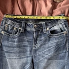 Elevate your country and western look with these stylish Miss Me bootcut jeans. Featuring a medium wash denim and a low rise waistline, these jeans are perfect for any casual occasion. The 5-pocket design and accented studded, embroidered, and button details make these jeans a must-have for any fashion-forward woman. Crafted with a blend of cotton and elastane, these jeans offer a comfortable stretch fit and distressed details for added style. Machine washable for easy care, these jeans have a 30-inch inseam and zip/button closure. Ideal for regular size 28 women, these jeans are a great addition to any wardrobe.
