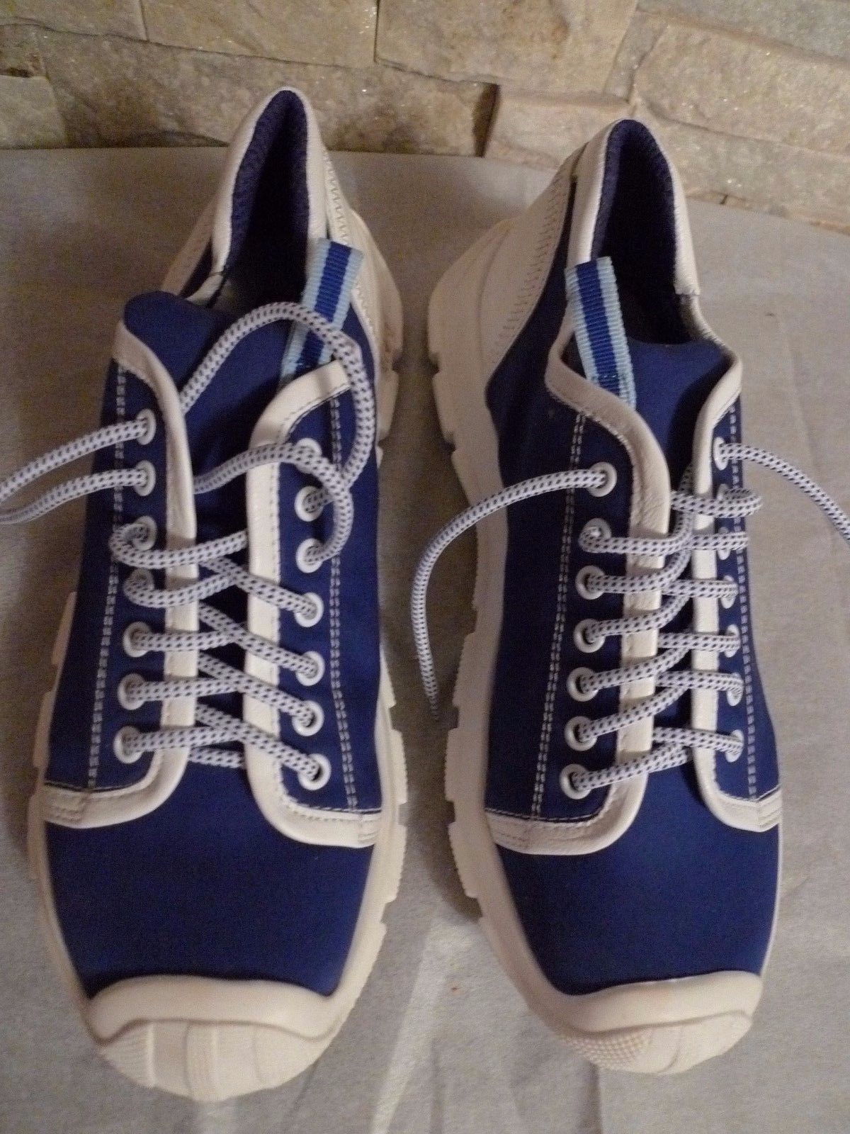 100%AUTHENTIC MADE IN ITALY BRAND NEW MIU MIU by PRADA CANVAS & LEATHER SNEAKERS COLOR BLUE / WHITE ( MIU MIU SIZE 7,5 ) ( US SIZE 8) MEASUREMENT INSOLE FROM TOE TO HEEL 10 3/4 INCHES
