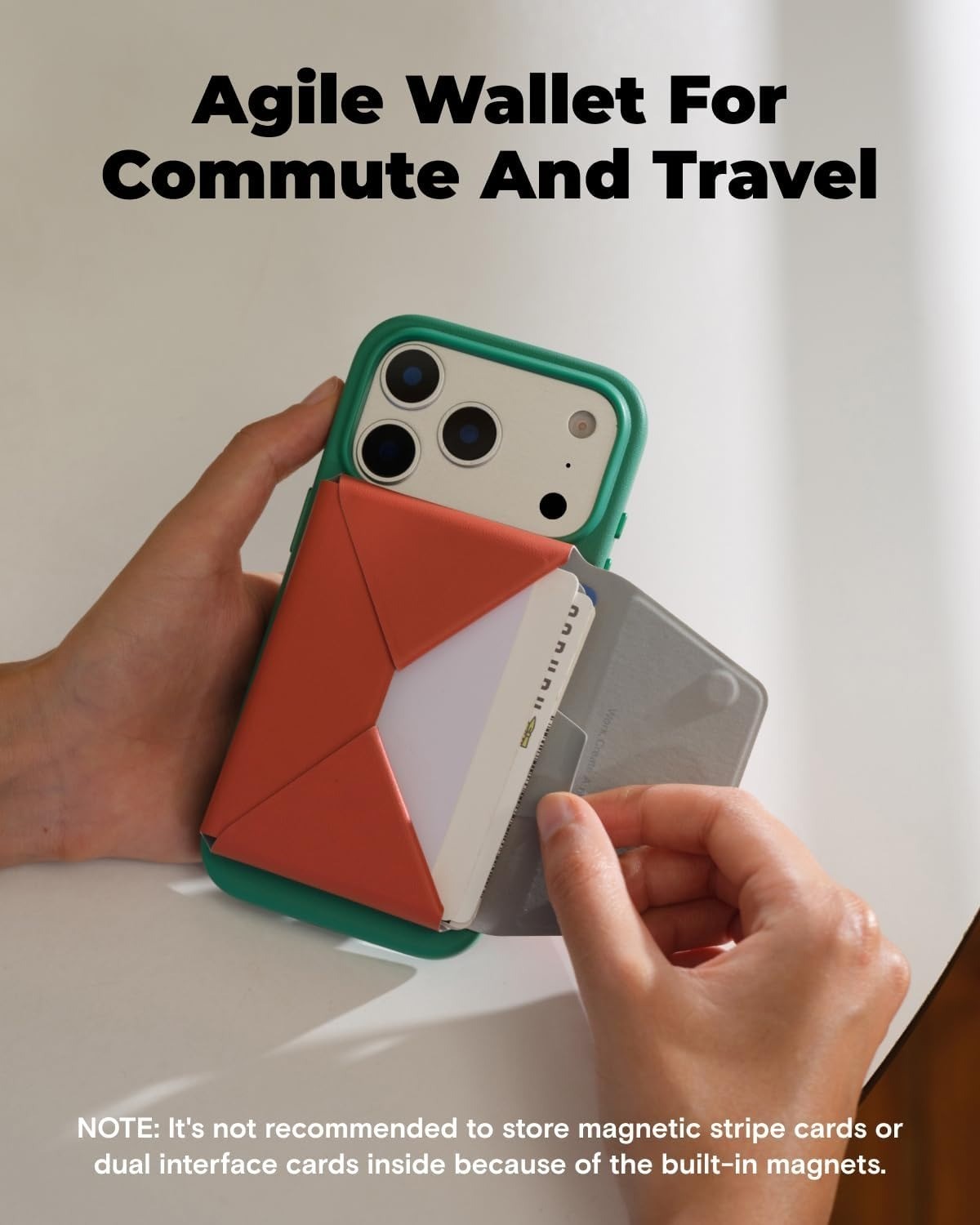 MOFT Snap Field Wallet Stand: This slim magnetic phone wallet combines a card holder and stand in one design. It quickly folds into a phone stand and securely stores up to 8 cards, with additional space for coins, keys, or a SIM card. The hidden stand opens easily and provides a practical 60° viewing angle for hands-free use. Organized and Easy Access: Features a dual-compartment design to keep items organized. A side-pull mechanism allows quick access to cards when needed. Built-in RFID blocking helps protect card information from electronic theft. Slim Magnetic Design: At just 0.6 inches thick and 2.8 oz, this lightweight wallet attaches magnetically to your phone, providing convenient access to your most-used cards without the bulk of a traditional wallet. Compatibility: Compatible with iPhone 12 through iPhone 17 series and MagSafe cases. For other phone models, it can be used with the included MOFT metal ring. Premium Materials: Made with MOVAS vegan leather for a soft, durable finish that resists wear. Available in multiple color options and designed for everyday use, whether commuting, traveling, or making quick payments. Features: • Minimalist • All season • Smooth • China • Spot clean recommended Size: One size Condition: New Without Tags