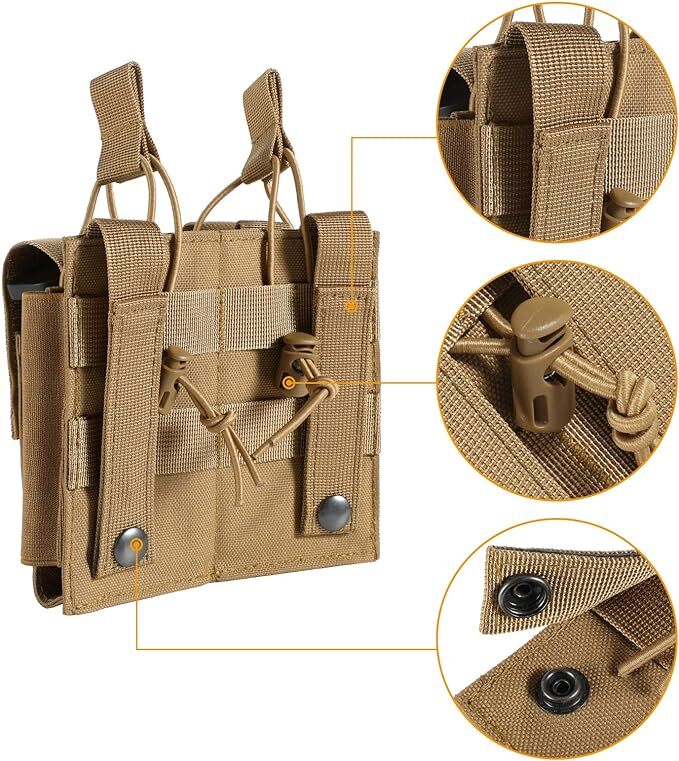 This mag pouch is a game-changer! Holds two clips securely with its sturdy nylon build and MOLLE compatibility—perfect for vests or belts. The Velcro and snap closure keeps everything in place during hikes or range days. Super versatile and built to last! 5/5 would recommend.