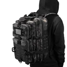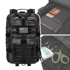 Brand:Hannibal TacticalDesc: Military Tactical Backpack Large 3 Day Assault Pack Army Molle Bug Out Bag Outdoor Rucksacks hunting backpack Travel Bag USA Flag Patch 2*V Locks 1*Tactical D-RingCapacity: Tactical backpack size approx.:12"*20"*13" / 30*50*33CM (W*H*D)Military backpack is made of 600x600 Density fabric, quality and water-resistantMolle webbing to allow for expansion and customization to make it the perfect base for the bug-out or edc bagMilitary assault pack with double-stitched, Heavy duty zippers and utility-style cord pulls, Mesh ventilated padded back panel, Padded shoulder straps and sternum strap with quick release bucklesMilitary backpack has hydration compartment that works great for any hydration bladder up to 3L. As hydration backpack or outdoor hiking camping backpackThis tactical assault pack backpack can be used as 3 day assault pack, Army backpack, Bug out bag backpack, Range bag, Military rucksack, Hunting backpack, Sport bag, Or day pack for daily use LARGE CAPACITY - Military tactical backpack size approx.:12"*20"*13" / 30*50*33CM (W*H*D) This 40L tactical military assault backpack is made of quality and water-resistant High Density fabric, works great with 3L hydration bladder MULTI-FUNCTIONAL - There are 2 main compartments, 2 small compartments in front, and a back compartment for a hydration bladder. Each of the compartments has variety pockets to help with organization. The large compartment area has an elastic strap to hold laptops or anything you don't want to move around. Each pocket has two zipper pulls, and one of the compartments that can fully open all the way down to the bottom like suitcase. COMFORTABLE & TOUGH - The shoulder straps are padded and adjustable and the waist belt expands enough. The thick mesh padding back area and shoulder straps will not pinch you under heavy duty. This MOLLE system tactical 3 day assault pack can be used as bug out bag backpack, hunting backpack, range bag, survival backpack or trekking backpack, etc. The Y strap and buckle on the front is great to roll up a sweatshirt or light jacket. And the straps at the bottom can be used to hold a tent or sleeping pad. The front and both sides come with MOLLE loops. PACKAGE INCLUDED - 1 Tactical backpack, US Flag patch, 2pcs D-Ring, 1pc MOLLE Webbing Dominators. Should you have any additional problem, please let us know without hesitation at any time.