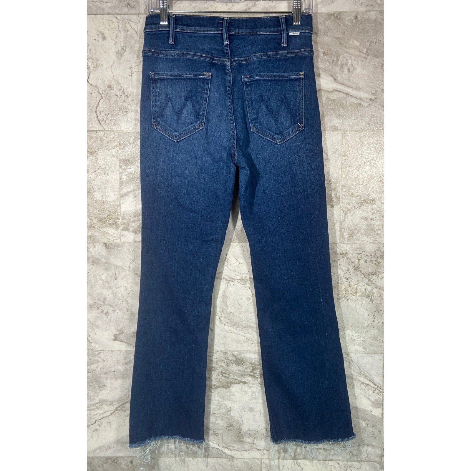 MOTHER The Hustler Ankle Fray Jeans in the Home Movies wash. These high-waisted jeans feature a classic five-pocket design, a button fly closure, and a subtle flare at the ankle with a raw hem. The rich blue wash offers a vintage-inspired look. Perfect for a casual day out or a stylish evening. Measurements: Waist: 28" Inseam: 25.5" Rise: 11.5" Style: Ankle Department: Women Fabric Wash: Home Movies Type: Jeans Accents: Fringe, Button, Logo Features: Pockets, Distressed, Stretch Fit: Slim Pattern: Solid Fabric Type: Denim Material: Cotton Blend, Spandex Closure: Zip, Button Keywords: MOTHER jeans, high waisted jeans, ankle crop jeans, raw hem jeans, flare jeans, bootcut jeans, stretch denim, designer denim, casual denim, everyday wear, street style, distressed denim, vintage wash Fast 1 day Shipping