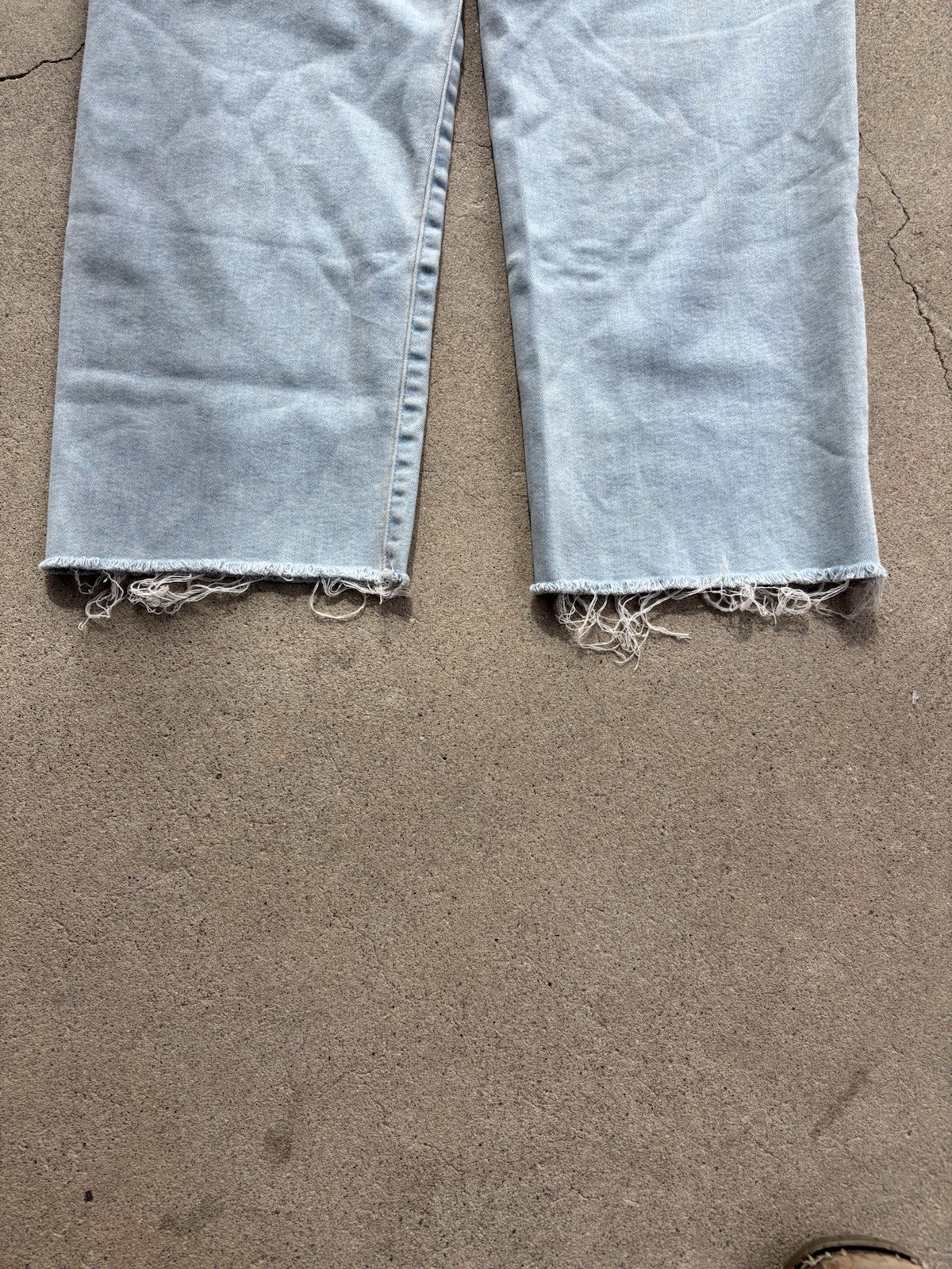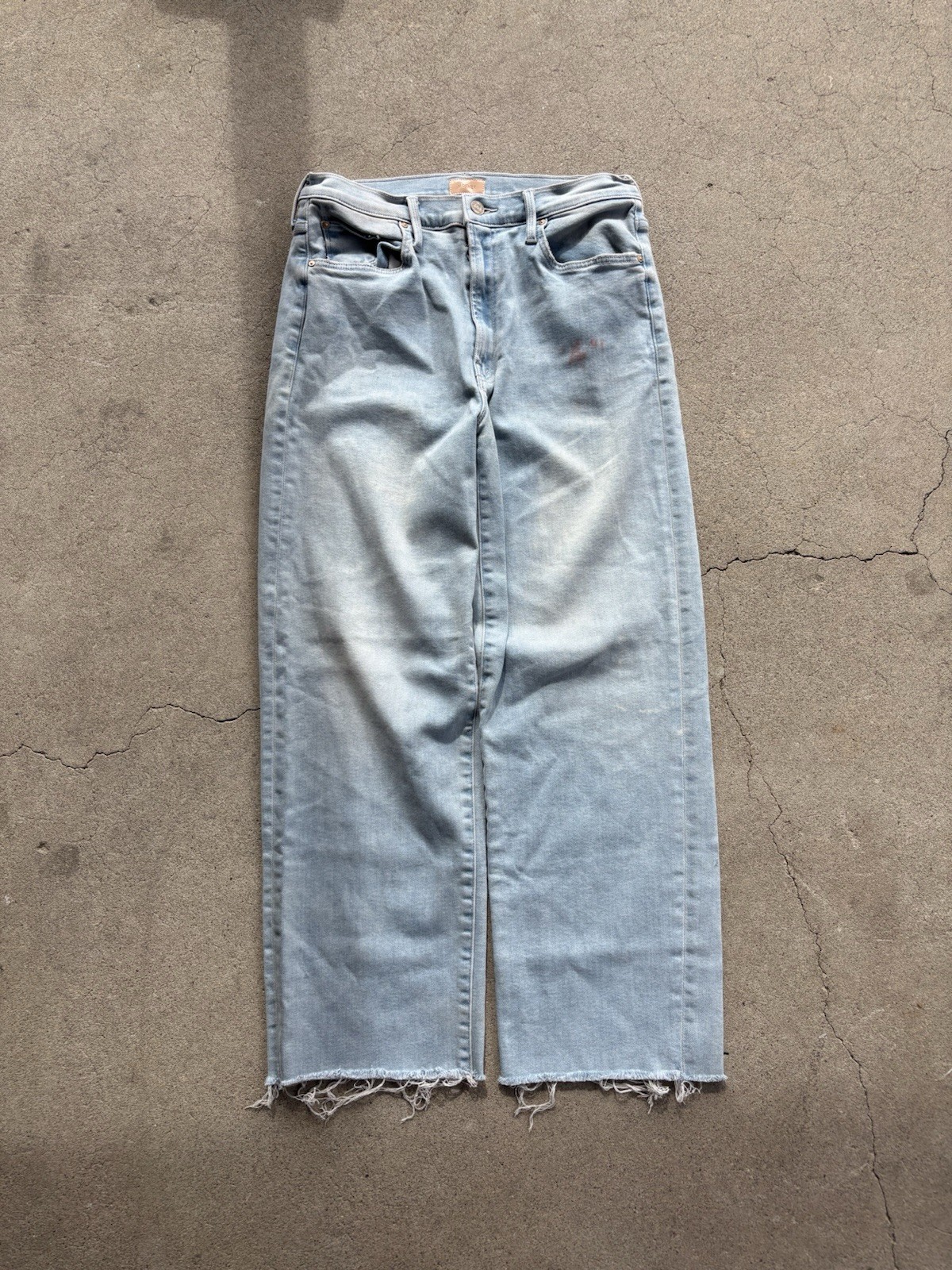Only flaw is red mark on front of jeans, possibly able to get it out I haven’t tried. Message with any questions! The MOTHER The Rambler Zip Ankle Fray Cropped Chill Pill Light Wash Jeans in size 30 X 27 are a stylish addition to any woman's wardrobe. Made from a comfortable cotton blend denim, these high-rise jeans feature a solid blue color with a light wash for a trendy look. The ankle zip detail adds a modern twist, while the cropped length is perfect for warmer seasons. With a flattering silhouette and versatile style, these jeans are machine washable for easy care and are a must-have for any fashion-forward woman.