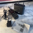 The product is a Motorola 021-b digital cordless phone in black color. It is a single handset phone line with no charger included.