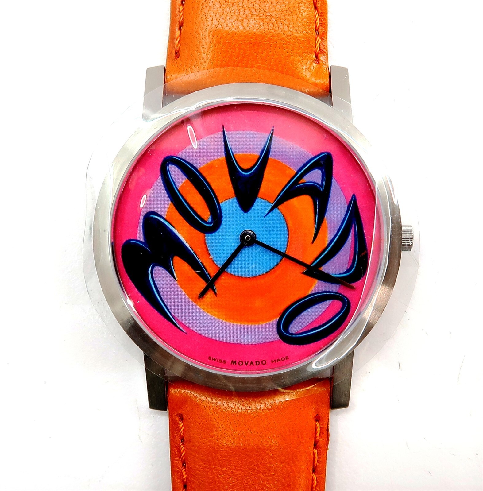 New MOVADO KENNY SCHARF Artist Series MOVADO TIME Watch Limited Edition 38/125 This eBay listing is for a New Old Stock classic Movado Artist Series by KENNY SCHARF watch set that comes as you see pictured in the listing and noted above. This watch is brand new and comes with the original leather wrapped box, colorful Kenny Scharf designed outside box, original warranty card, paperwork and extra black leather watch band - just in case you don't like the original band that is on the watch now. This is a very limited edition watch number 38 of only 125 made. The battery inside had expired from age so it was replaced. If you collect classic Swatch Watches, then please check out my other listings in my ebay store!! I just picked up close to 400 NOS Swatches from a local auction where I'm told the consignor had the largest Swatch Watch collection in the world!! Many of the watches are Special Editions, Limited Editions, Boxed Sets, Scarce and rare models and other vintage Swatches. Watch name : MOVADO TIME Model : Limited Edition Kenny Scharf Artist Series New Battery : Yes (due to age, the original battery was removed with a new battery installed) Features/Notes : Works Great! The original Movado Artists' Series was launched in 1987, inspired by some of the company's watches that are in collections in some of the world's leading museums. The Series contains commissioned, limited edition pieces designed by artist Kenny Scharf. Kenny Scharf presents six stunning graphic dial designs to the Artists' Series. The Series contains six watches named Blurple Time, Movado Time, Universal Time, Starring the Star, Time Flies, and Ontime. Each Kenny Scharf dial design is framed in a simple round stainless steel case featuring a custom-engraved case-back. Every timepiece includes two interchangeable leather straps that play off of colors found in the dial. There are a total of 125 pieces of each of the six watches made in the series. These watches range from $695 – $3,495 when new. They have a museum face steel case, sapphire crystal and Swiss quartz movement. I believe that this series came out around 2010. I'll have a few other Movado watches in this series listed in my ebay store at this time as well. Seller Location Reference - Rolling Cart/Bin 1 BID IN CONFIDENCE – CHECK MY FEEDBACK! My goal is your satisfaction. I leave positive feedback right after the payment is received for all orders!! If you plan to leave anything less than positive feedback and 5 stars - please let me know so that I can work out any problems that you may have. I aim to please!! SHIPPING & HANDLING FOR US BIDDERS We ship ASAP upon payment as noted above within 1 business day 99% of the time!! We normally pack up your new treasures 2 - 3 times a day and ship using USPS and Fedex Ground so that you get your items in a timely fashion. As always - there is no charge for local pickup on any of my items!! SHIPPING AND HANDLING FOR INTERNATIONAL BIDDERS Import duties, taxes and charges are not included in the item price or shipping charges. These charges are the buyer’s responsibility. Please check with your country’s customs office to determine what these additional costs will be prior to bidding/buying.” THANK YOU AND HAVE A WONDERFUL DAY!! Powered by SixBit's eCommerce Solution