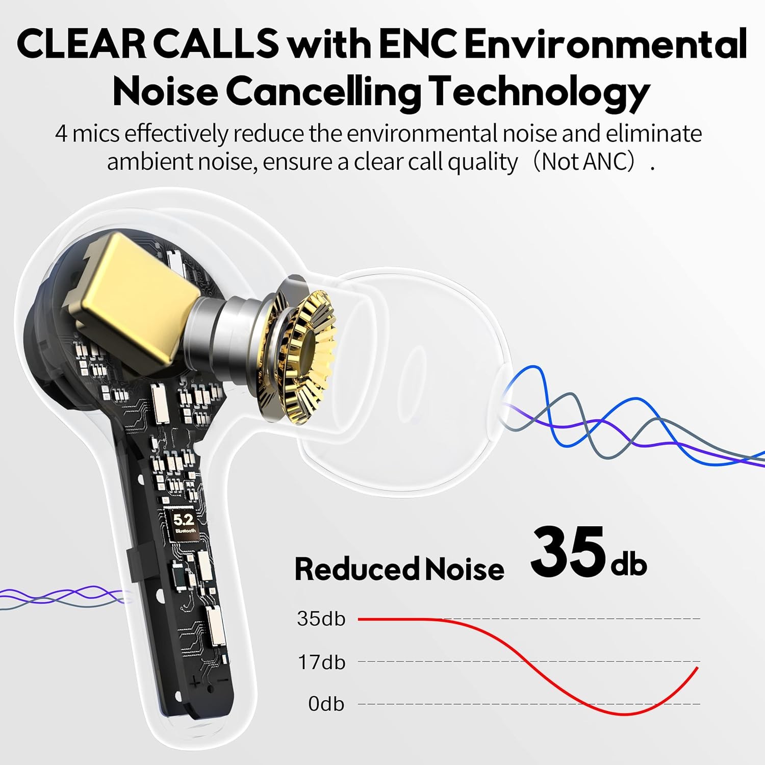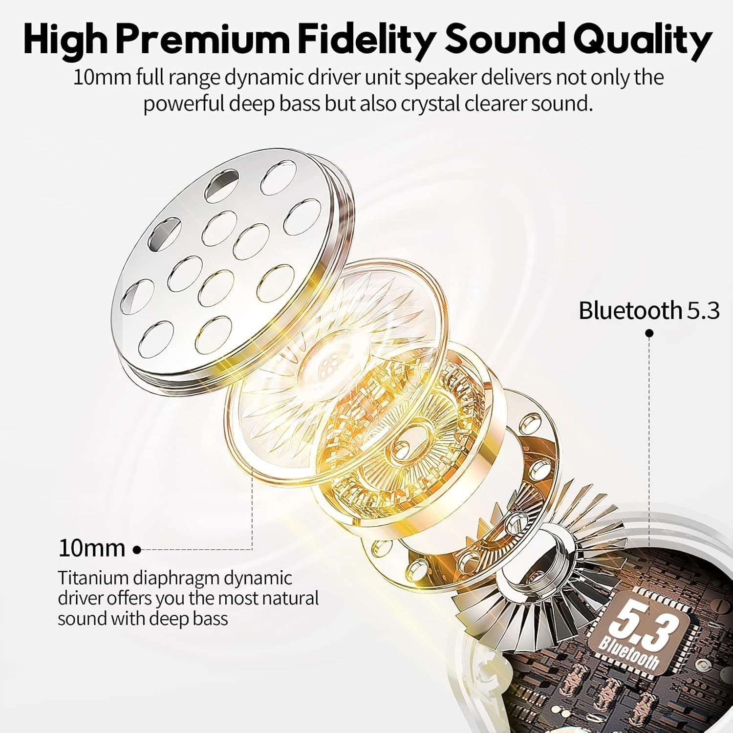 MOZOTER Bluetooth 5.3 Wireless Earbuds,Deep Bass Loud Sound Clear Call White Product Details Headphones Jack: No Jack Model Name: DBK02 Connectivity Technology: Wireless Wireless Communication Technology: Bluetooth Included Components: Cable, Eartip*3, User Manual, Wireless Charging Case Age Range (Description): Adult Charging Time: 6 Hours Compatible Devices: Bluetooth-enabled devices Control Type: Media Control Cable Feature: TWS Item Weight: 48 Grams Water Resistance Level: Water Resistant Frequency Range: 20 Hz - 20,000 Hz Control Method: Remote Number of Items: 1 Battery Life: 6 Hours Audio Driver Type: Dynamic Driver Bluetooth Version: 5.2 Carrying Case Color: White Earpiece Shape: Rounded Tip Manufacturer: MOZOTER Product Dimensions: 2.36 x 1.57 x 0.98 inches Item Weight: 1.69 ounces Item model number: DBK02 Batteries: 2 Lithium Ion batteries required. (included) Brand: MOZOTER Color: White Ear Placement: In Ear Form Factor: In Ear Noise Control: Active Noise Cancellation 【Bluetooth 5.3 & One-Step Pairing】Featuring the most advanced Bluetooth 5.3 technology, MOZOTER Wireless Earbuds support HSP HFP A2DP AVRCP, which provides stable transmission speed and instant pairing without interruptions. These loud sound wireless earbuds will automatically turn on and enter pairing status when you open the charging case's lid, and you can pair the earbuds in Bluetooth settings of your phone. 【Hi-Fi Stereo Sound Quality& Clear Call】MOZOTER DBK02 bluetooth earphones offers a powerful heavy bass, ultra-clear vocals, and wonderful treble for using a 4-sound chamber design and 8mm speaker drivers. 2 built-in mics in each earbud utilize call noise cancellation to ensure clear and truly sound, allowing you to enjoy high quality conversations anytime, anywhere. 【Real-Time LED Power Display】The digital portion of the LED screen indicates the percentage of how much the real-time battery has left of the charging case. The smart LED digital screen can check battery consumption display anytime.Through this display, you are able to know the power of the earbuds at all times you can master the best time to charge it. 【Ultra Long Battery Life&Light Weight】Listen for up to 6 hours on a mono earbud,and pocket sized charging case that supplies recharges with type-c cable extends playtime up to extra 36 hours. Enjoy your favorite music with your wireless earphone on the go. With the ultra lightweight Craft,MOZOTER TWS Bluetooth earbuds offers a whole new wearing experiences,small size and lightweight make it burden-free on your ears. 【Comfortable & Secure Fit】Super comfort ergonomic design ensures secure fit and long-lasting comfort, 3 pairs of different sized soft rubber ear caps come for options (M size is installed). Perfect for your workout, sports,working,driving without easily falling out.Accommodate your ear canal without experiencing any discomfort while ensuring a secure fit. No more sore ears even after extended use. MOZOTER wireless earbuds strive to bring you the best wearing and listening experience.