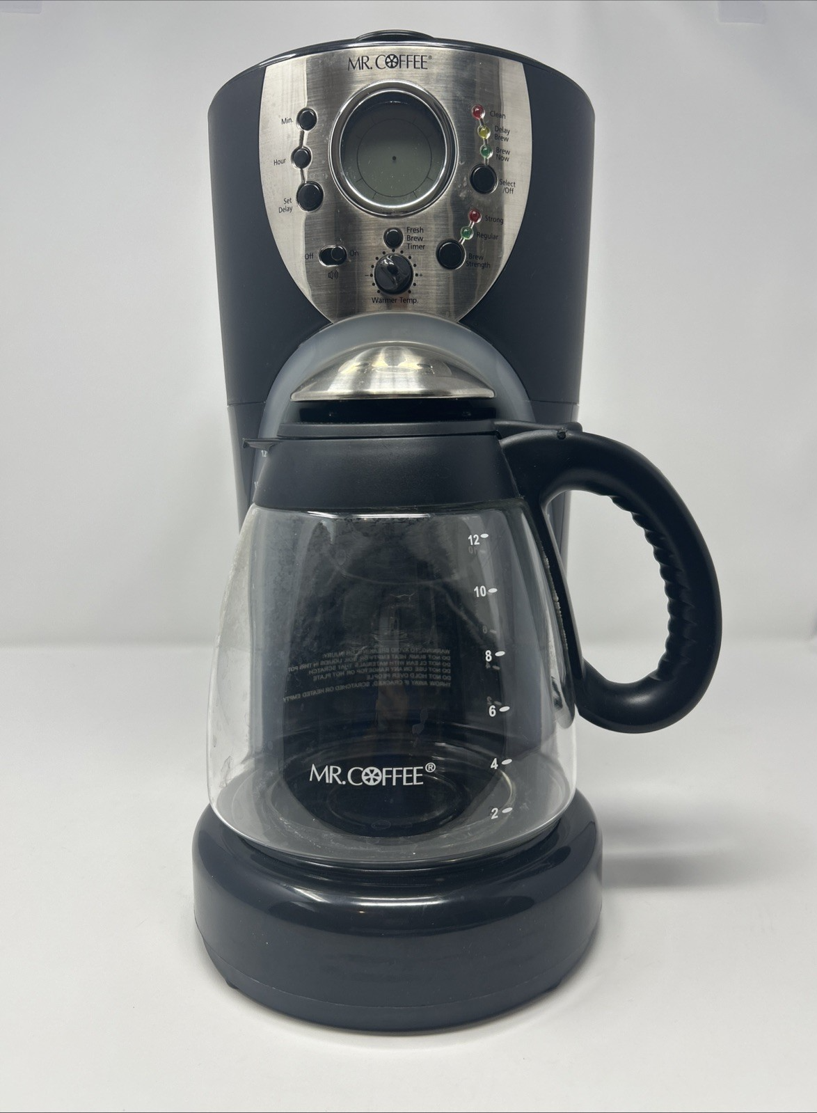 The Mr. Coffee 12 Cup Coffee Maker is a convenient and efficient electric coffee maker that brews multiple cups of coffee at once. With a timer feature, you can easily set it to start brewing at a specific time. The black plastic and stainless steel construction ensures durability and longevity in your kitchen. Perfect for home use, this Mr. Coffee coffee maker is a reliable and practical addition to any household.