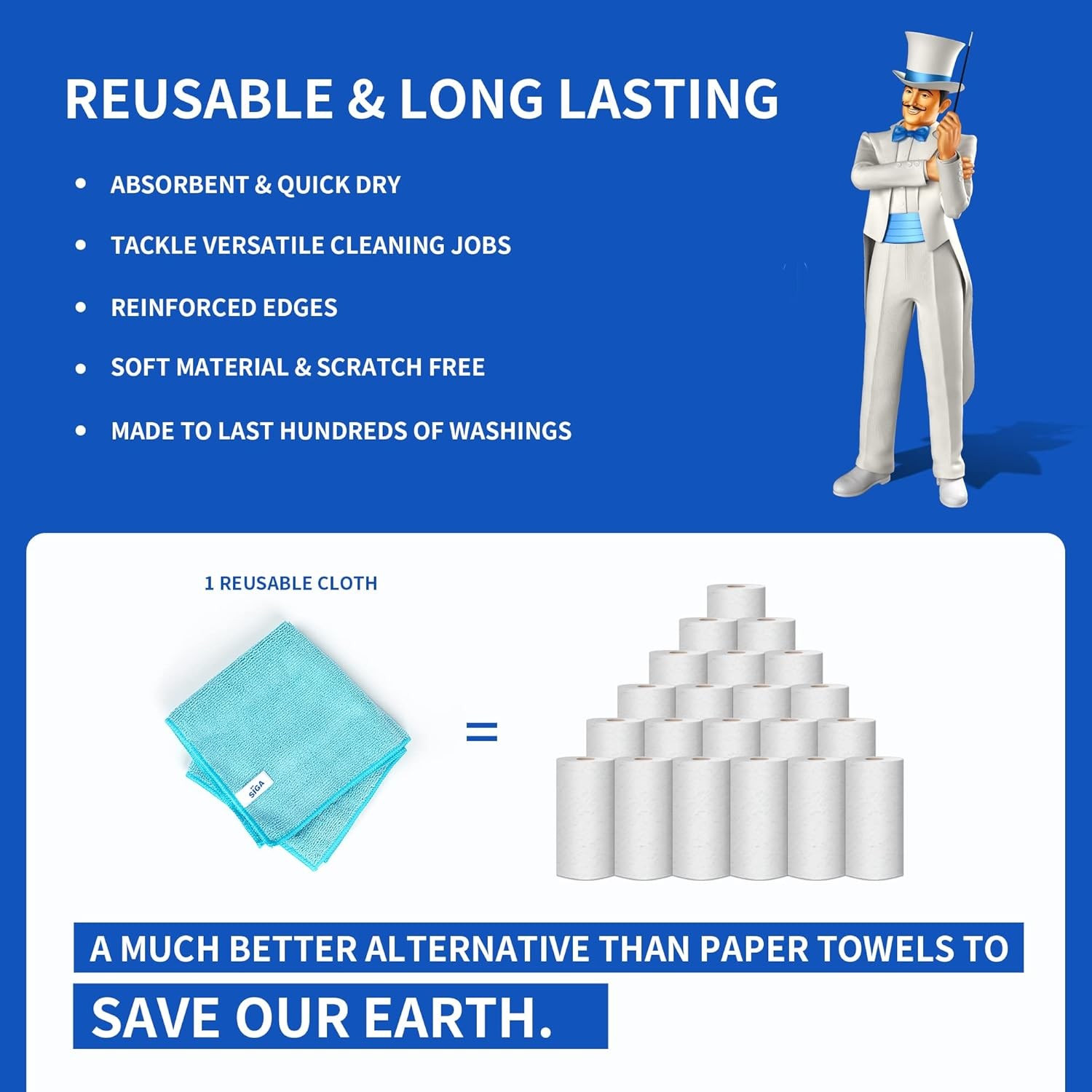 MR.SIGA Microfiber Cleaning 12-Pack 12.6" x 12.6", Assorted Product Details Color: Assorted Brand: MR.SIGA Towel form type: Cleaning Cloth Age Range (Description): All Ages Material: Microfiber Product Dimensions: 12.6"L x 12.6"W Number of Items: 12 Style: Modern Pattern: Solid Special Feature: Super Absorbent, Lint Free, Quick Dry, Scratch Free, Hanging Loop Theme: No Theme Fabric Weight: 280 Grams per Square Meter Product Care Instructions: Hand or machine wash microfiber cloths separately in warm water with mild detergent. Do not use bleach or fabric softener. Do not tumble dry. Do not iron. Shape: Square Size: 12-Pack 12.6" x 12.6" Unit Count: 12 Count Fabric Type: 85% Polyester, 15% Nylon Item Weight: 370 Grams Model Name: Microfiber Cleaning Cloth Manufacturer: Ningbo Shijia Cleaning Tools Co., Ltd. Item Weight: 13.1 ounces Item model number: SJ21632 Is Discontinued By Manufacturer: No ULTRA SOFT MATERIAL & SCRATCH FREE - Ultra soft and highly absorbent microfiber cleaning cloths, great for cleaning windows, kitchenware, car or other delicate surfaces. ABSORBENT & LINT FREE - Made of 85% Polyester, 15% Nylon. These non-abrasive cleaning rags can soak up water from the countertop and tables instantly and without lint or streaks left behind. Clean with or without water, from worktops, appliances to kitchens, bathrooms, mirrors etc, they will make your house sparkling. TACKLE VERSATILE CLEANING JOBS - These premium microfiber towels are also perfect dish rags which don't smell, removes grease and particles from microwave oven, plates, pots or pans effortlessly. Not only that, you will be amazed they are also terrific duster that removes fingertips from silverware and glasses easily and leaves your kitchen spotless. REUSABLE & LONG LASTING - These microfiber towels feature high quality stitching with reinforced edges, they are durable and made to last hundreds of washings. They are lightweight, super absorbent and dry quickly, use them everyday to enjoy your cleaning. GENEROUS SIZE: Each kitchen towel measures 32 x 32 cm (12.6 x 12.6 inches), offering a good coverage area for efficient cleaning. Comes in a pack of 12 microfiber towels, providing ample supply for various cleaning needs around the home or office.