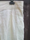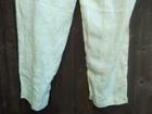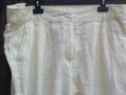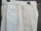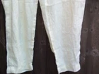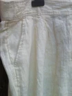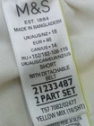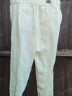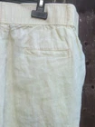 Marks and Spencer short leg comfort trousers UK 18 Yellow with feint ditsy floral pattern 100% flax (linen) Elasticated waist with belt loops (no belt) Two hip pockets, stitched pockets at rear (could be unstitched) Zip, button and hook and eye closure Waist measures 38'' but would comfortably stretch to 40'' 28'' inside leg 12'' rise In very good + used condition, very light wear