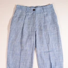 M&S Linen Blend Chambray Trousers Blue UK 10 Short Capri Length 23" Tapered Leg Marks & Spencer Linen blend chambray trousers in a beautiful blue merle Pleated at the top for extra shaping, slightly tapered legs Rear of the waist is elasticated, with functional pockets, belt loops and a button/zip closure Great for smart-casual events, truly lovely trousers Size UK 10 SHORT - Measurements below MEASUREMENTS (Flatlay, approx): -Waist: 14.5-16.5 inches / 37-42 cm -Length: 33.75 inches / 85.5 cm -Inner Leg (from crotch): 23 inches / 58.5 cm Most of our items are sent in 100% bio-degradable, recyclable mailing bags, or sometimes re-used packaging, to help the planet. UK shipping is Royal Mail Tracked 48 (unless otherwise stated) so you can keep up with the progress. Any questions, please ask - I normally reply within a few hours. Also, happy to consider offers.