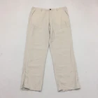 The trousers are good condition. Look at pictures for more details. Please note, item measurements are approximate and in the photos. Please compare our measurement photos to your favourite garments to ensure fit.