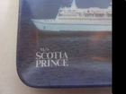 M/S Scotia Prince Cruise Ship collectible souvenir tray melamine 90s Shallow rectangle tray that measures approximately 6x4". Vintage made in the 1990's. Image of cruise ship on rectangle tray. Great for collecting, jewelry, trinkets, rings, rolling. There is a made in Taiwan sticker on the back as well as a portion of and residue from the original price tag. E2