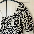 GREAT QUALITY TOP FROM 'M&S' SIZE 12 NEW WITH TAGS BLACK & WHITE PRINT ONE SLEEVE ELSTICATED SLEEVE ELASTICATED AROUNG THE TOP & HEM 1/2 LENGTH SLEEVES CHEST MEASURES 20" UNDERARM TO UNDERARM LENGTH FROM UNDERARM TO HEM MEASURES 12" FROM A SMOKE & PET FREE HOME MY REF:150 WHY NOT TAKE A LOOK AT MY OTHER ITEMS & GREAT FEEDBACK - I LIST DAILY!