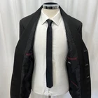 M&S TAILORING Black Regular Fit 2 Piece Suit C40M W34 L31 Material 100% polyester Jacket Features Chest: 40M Inside pockets: 3 Front pockets: 2 Breast pocket: 1 Buttons to each cuff: 4 Buttons to front: 3 Back vents: 0 Shoulder to cuff: 25" Armpit to cuff: 17" Armpit to armpit when laid flat: 22" Shoulder to shoulder: 18" Collar to hem: 31" Trouser Features Waist: 34" Zip Front pockets Back pocket: 1 with button 1 hook fastenings Inside leg: 31" (can drop 1/2") Width of hem at bottom of trousers: 8 3/4" AKD0012-831 Please note: Colours may slightly vary due to lighting conditions Each item undergoes meticulous hand-measured scrutiny; sizes may not align precisely with the label Review measurements and review the item description/photos before placing your bid Unfortunately, we cannot provide additional photos once items are listed The shirt and tie are not included unless explicitly stated in the listing Questions and concerns: Reach out to us through the ebay messaging system - we aim to respond within a maximum of 12 hours Ironing guidelines: Garments may arrive with minor creases Refer to the care label and use continuous steam when ironing We recommend dry cleaning for best results and peace of mind Your feedback matters: Please leave us a 5-star rating if satisfied For issues or concerns, please contact us before leaving feedback Returns: We offer a generous 30-day return period, via the eBay returns centre Please return items in their original packaging with all tags attached Buyers cover return shipping costs unless items are faulty or inaccurately listed