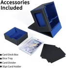 Opening Mechanism: Lift-Off Lid Product Dimensions: 4.64"L x 3.54"W x 5.39"H Special Features: Card Display, Multifunction Shape: Rectangular Material Feature: Scratch Resistant Batteries Required?: No UPC: 313026731736 Special Feature: Card Display, Multifunction Color: Black/Blue Item model number: Deckbox003 Pattern: Solid Type: Does not apply Water Resistance Level: Waterproof Item Weight: 13.1 ounces Closure Type: Magnetic Country of Origin: China Batteries Included?: No Style: Minimalist Brand: Does not apply Item Package Quantity: 1 Unit Count: 1.0 Count Included Components: Commander Deck Box, Card Holder, Dice Tray, Card Dividers Material: Faux Leather Number of Items: 1 gtin13: 313026731736 Number of Compartments: 2 Recommended Uses For Product: For Trading Cards