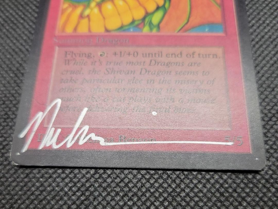 * Description All my products are 100% Authentic. Please feel free to contact us if you have any question. ππ₯ Shivan Dragon β Limited Edition BETA Signed π₯π πβ¨ The Oldest Dragon Symbolizing MTG Shivan Dragon is one of the most iconic dragon cards that has existed since the dawn of Magic: The Gathering. Simply being a **Limited Edition BETA (black border)** makes it a core piece in any vintage MTG collection. βοΈπ Signed by Melissa Benson Signed by Melissa Benson, the illustrator of Shivan Dragon Signed copies have extremely limited circulation, making this a card of immense collector and historical value π§Ύπ Card Condition (Important) Several white chips present Minimal dents on the left edge of the front and a corner of the back Otherwise, no major damage visible; in very good condition for a BETA β» Considering its age, this is a highly rated specimen suitable for collections. π‘οΈπ¦ Shipping with Protection as Top Priority Thorough measures against bending, crushing, and moisture Packaging specifications designed for high-value vintage cards Suitable for long-term storage and display ππ₯ The BETA Black-Bordered, Signed Shivan Dragon Symbolizing MTG History π₯π * Shipping We ship using FedEx, DHL and Japan Post. * Payment We usually ship within 5~10 business days of receiving cleared payment. * International Buyers - Please Note: Import duties, taxes and charges are not included in the item price or shipping charges.These charges are the buyers responsibility.Please check with your countrys customs office to determine what these additional costs will be prior to bidding/buying. These charges are normally collected by the delivering freight (shipping) company or when you pick the item up do not confuse them for additional shipping charges. I do not mark merchandise values below value or mark items as "gifts" - US and International government regulations prohibit such behavior.