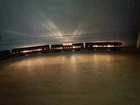 WOW A beautiful set of passenger cars, at an affordable price to add to your collection. This passenger car set is in great condition. Look around you won’t find any for this price in this condition. There are a few small scratches on the tops and sides of the cars very small, but you can see it in the pictures. Other than that. Everything operates and looks great. All the illumination works as you can see in the pictures, there is no illumination in the baggage car it comes that way. The box shows a little bit of wear and tear and some water damage on one end. It is only to the box you can see it in the pictures. There is no damage to the Styrofoam. There are no bags for the trains. There are three diaphrams for the cars as well. * Please look at all pictures as they are part of the description* If you have any questions, please feel free to reach out to me. Thank you. !