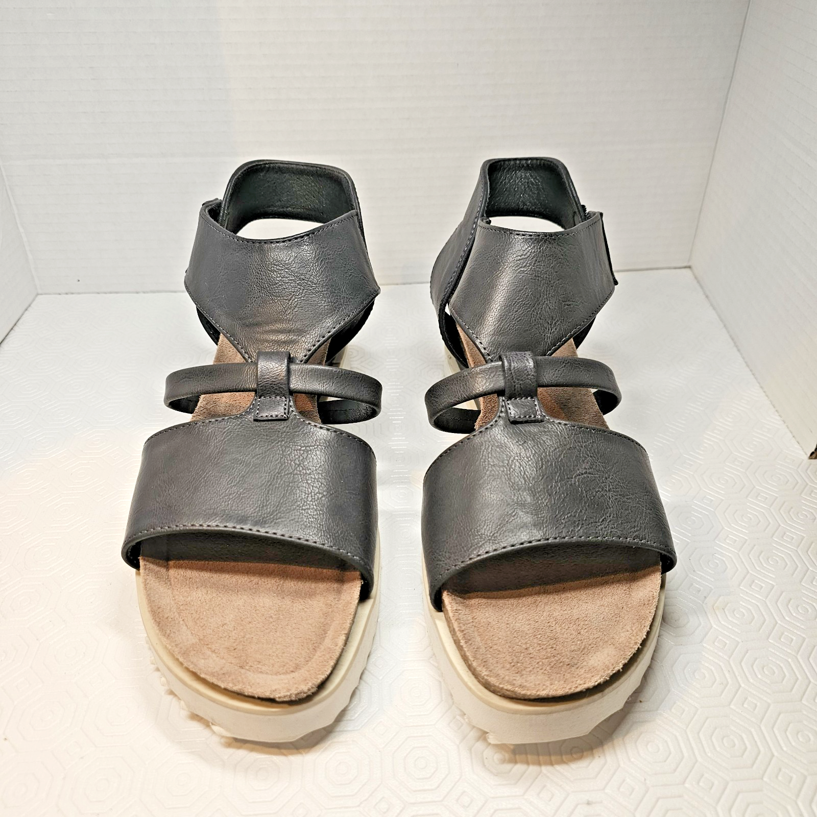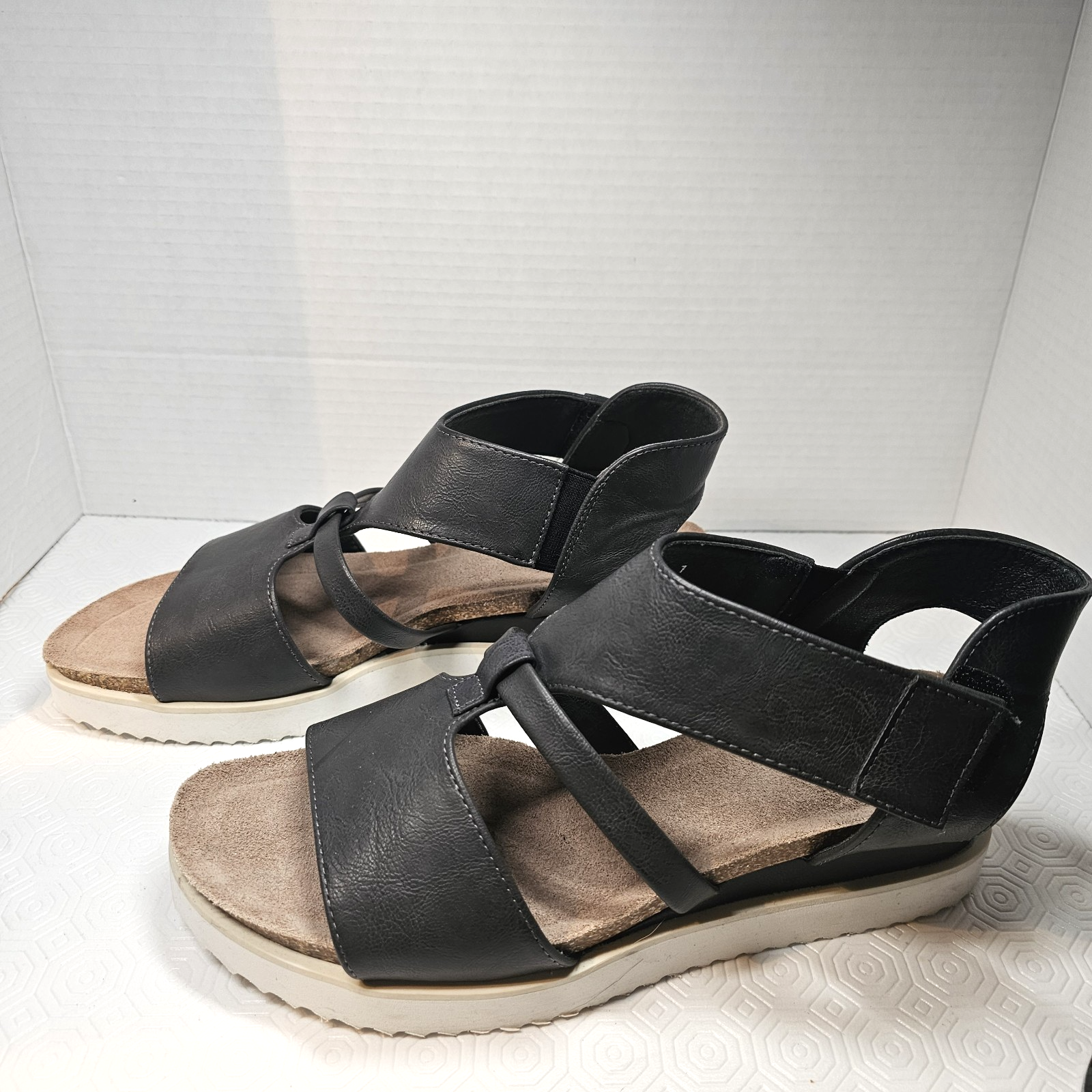 MUK LUKS Pitch Soprano Charcoal Gray Wedge Sandals Women's Size 11 NWT Elevate your style with these Muk Luks Pitch Soprano sandals! The strappy design and charcoal gray color make them a perfect addition to any outfit. The wedge heel style provides a comfortable lift, while the mid-height heel height offers just the right amount of elevation. Crafted with synthetic upper material, these sandals are both durable and stylish. They are available in women's size 11 and have a medium standard width. Perfect for any occasion, these Muk Luks Pitch Soprano sandals are a must-have for any fashion-forward woman. If you have any questions do not hesitate to contact us. Thank you for stopping by and have yourself a great day.