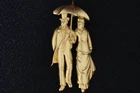 If you are looking at this ad then you may be aware of the quality and reputation of the Jewellery brand Multilana AIC AKA the Art Institute of Chicago and there products which is an art museum and institution for higher education . However, for those of you who are new to this brand what we have here is a limited edition Multilana AIC b rooch in gold tone with a victorian couple strolling under an umbrella. In addition the p iece is signed on the back with the Multilana AIC name. Fur thermore, this style of costume is currently sought after by collectors and would make the ideal gift or treat to any Multilana collector or brooch enthusiast. As for the cosmetic condition this brooch has seen minimal usage and is in near mint condition with minor signs of handling and as such I'd rate it as 9.5/10. Comes boxed without paperwork. This item will be well packed to insure it arrives to you in as described condition. Brooch Measures 5.4 cms (L) X 2.3 cms (W) UK postal costs signed and posted within 24 hours. Feel free to save me as a favourite seller or check out my other items for more interesting collectables.