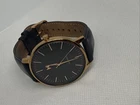 Elevate your style with the MVMT Boulevard Santa Monica Women's Watch, a chic timepiece that effortlessly blends classic and modern aesthetics. The rose gold-tone stainless steel case and black leather strap bring a touch of sophistication to any outfit, whether you're dressing up for a night out or keeping it casual for daytime wear. Its versatile design ensures it complements both formal and luxury styles, making it a perfect accessory for any wardrobe. The watch features a sleek black dial accented with stick indexes and a 12-hour dial for easy reading. A snap caseback secures the durable quartz movement, which keeps time accurately. With a water resistance of 30 meters, this watch is designed for everyday wear and light aquatic activities. Note that the item comes without the original box or papers, and the two-piece strap adds a contemporary edge to your timekeeping ensemble.