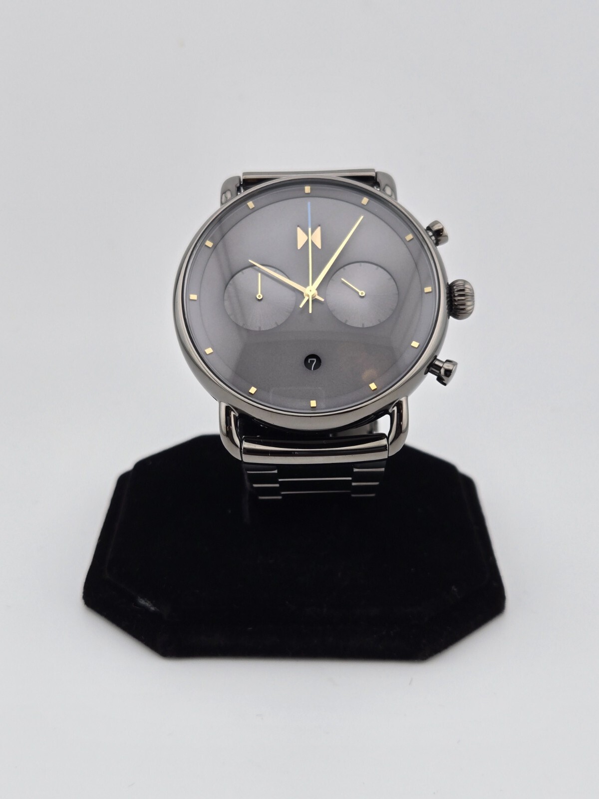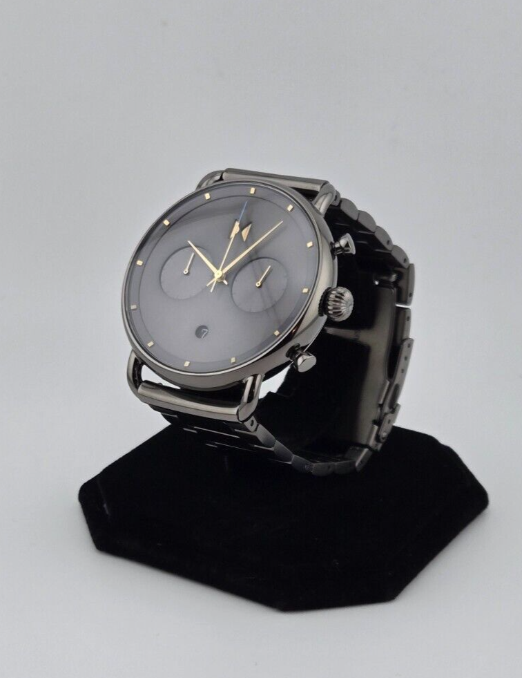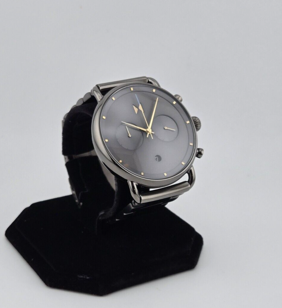 Band/Strap: Bracelet Case Color: Black, Gray Reference Number: 28000289-D Watch Shape: Round Bezel Color: Black, Gray Case Size: 45 mm Customized: No Movement: Quartz Department: Men Case Material: Stainless Steel Display: Analog Style: Casual, Classic, Dress/Formal, Formal, Sport, Travel With Manual/Booklet: No Dial Color: Black, Gray With Papers: No Band Material: Stainless Steel Type: Wristwatch Brand: MVMT Band Color: Black, Gray With Original Box/Packaging: No Features: Chronograph, Date Indicator, Luminous Dial, Luminous Hands, Luminous Indexes, Mineral Crystal, Scratch-Resistant, Water-Resistant Model: MVMT Chrono Water Resistance: 50 m (5 ATM)