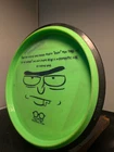 Add the Pre-beat, smart ass Frisbee Rick to your bag. An earlier attempt at a double sided dye, inspired by the green disc that will most likely end up blending into a lovely bush somewhere. But fear not there is a lovely note for whoever happens to find the pleasant surprise. This disc is also ink free. Disk Condition - 7/10 Flat(1)..2..3..4..(5)Dome - 1/5 Soft(1)..2..3..4..(5)Firm - 4/5