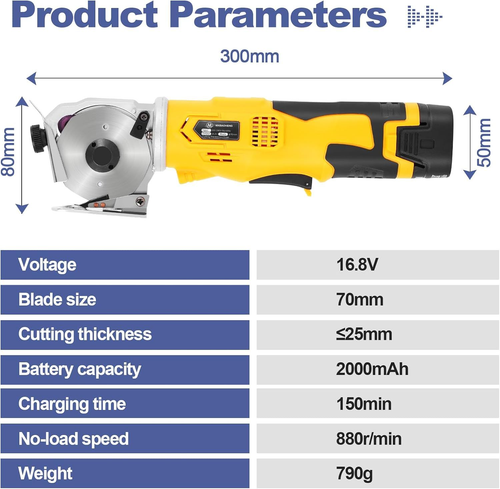 MXBAOHENG Electric Scissors Cordless Cardboard Cutter Power Box Cutter Round Knife Cutting Machine Portable Rotary Cutter for Fabric Leather Carpet (2 Batteries) LuxeFusion Product Description Features [Large capacity lithium battery]: This cordless rotary cutter comes with one 2000mAh lithium battery. Surging power provides continuous power output and improves work efficiency. Fast charging is about 150 minutes. When fully charged, the charging indicator turns from red to green. [Sharpening function]: This electric rotary cutter comes with the sharpening function. When the cutting fabric has burrs and the blade is not sharp enough, press the sharpener lightly for 1-3 seconds, it will start to sharpen the knife automatically. [Safety protection switch design]: This electric cardboard cutter has double protection of the switch, prevent accidental opening. Press and hold the start switch and safety lock switch to start. [High speed steel blade]: This electric cordless scissor comes with 2 HSS high speed steel blades, the blades are finely ground, sharp and wear-resistant. [Parameters]: Battery voltage: 16.8V Blade size: 70mm Cutting thickness≤2.5cm Weight: 0.79kg [Wide application]: This box cutter is suitable for cutting a variety of materials, such as clothes, carpet, foot pad, leather, cardboard. It is a convenient tool for home or industrial use. Product Details Color: Yellow Material: Steel Brand: MXBAOHENG Blade Material: High speed steel Style: Classic Item Weight: 0.8 Kilograms Finish Type: Brushed Handle Material: Leather Hand Orientation: Ambidextrous Unit Count: 1.0 Count Number of Items: 1 Manufacturer: MXBAOHENG Part Number: HQ-2560 Item Weight: 1.76 pounds Package Dimensions: 14.17 x 9.88 x 3.07 inches Item model number: HQ-2560 Batteries: 2 Lithium Ion batteries required. Size: 2 Batteries Finish: Brushed Power Source: Battery Powered Item Package Quantity: 1 Batteries Included?: No Batteries Required?: No Battery Cell Type: Lithium Ion Color: Yellow Material: Steel Brand: MXBAOHENG Blade Material: High speed steel Style: Classic 🚚 Free Shipping All orders ship free and fast to your doorstep. 🔁 Easy Returns Satisfaction guaranteed. 30-day returns, no questions asked. 💬 24/7 Support Contact us anytime; we’re here to help, day or night. Brought to you by LuxeFusion – Quality you can trust.