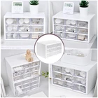 Cabinet Dimensions: Our mini desk storage box with drawers has outer dimensions of 9.8 x 6.3 x 5.9in. Drawer measures 2.9 x 1.6 x 5.7in each. Not only a mini desk box, but also a great craft organizer for the office and home Wall Mountable or Stack: Can not only be placed directly on the table, but also can be hung on the wall. The hanging hole design on the back is very convenient and quick to install. Hang it on your bedroom or bathroom wall to save your space High Quality: The drawer storage container is made of durable acrylic plastic with a smooth surface and rounded edges designed to keep your hands safe from injury. The drawer is push-pull and durable Multifunctional Organizer: 9 individual sliding plastic storage boxes are the perfect storage tool and versatile enough to store office supplies, crafts, jewelry, small toys, makeup, jewelry, and more Transparent & Large-capacity: Adopt transparent large-capacity design, beautiful and durable. Find what you need quickly. At the same time, desktop storage organizer is also a great gift that will surprise and love for girls