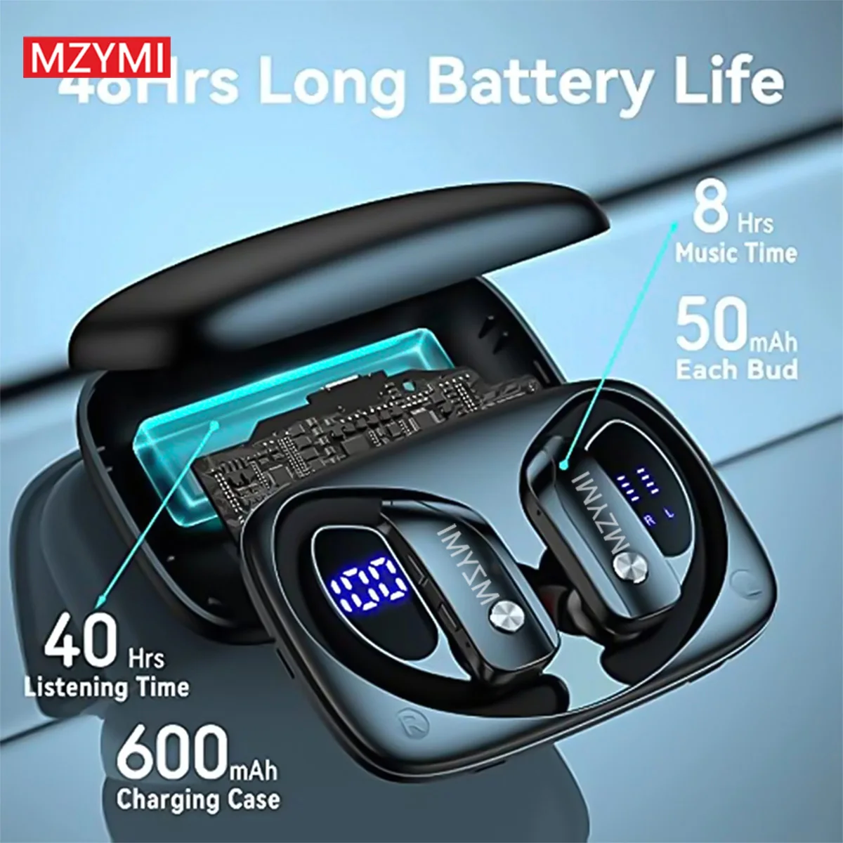 MZYMI Wireless Ear Hook Headset T16 Bluetooth5.3 Sport Running Stereo Sound Headphone LED Digital Display Earphone Built-in Mic For Android iOS Product Features: ✅ Truly Wireless This Earbuds let you discover the freedom of a wireless lifestyle listening to music, managing your calls or working out. ✅ Bluetooth and Stereo Sound Quality Adopt the advanced Bluetooth 5.3 technology. Which greatly improve the transmission speed and providing you with a low-latency listening experience.bluetooth earbuds adopt bluetooth technology, which can offer a clear and smooth connection, allowing you to hear crystal clear calls like you are communicating face to face with others. Don't worry about interruptions on listing to music and calling. ✅ One Step Pairing Pick up 2 headsets from charging case and they will connect each other automatically, then only one step easily enter mobile phone Bluetooth setting to pair the earbuds. ✅ IPX5 Waterproof It is suitable for sports to prevent water.bluetooth earphones can fit for camping, running, or working out, even on a rainy day. Ideal for sweating it out at the gym . Earbuds and case even can be washed by water and soap. ✅ Charge on the Go Providing convenient charging way with no strings attached. ✅ Handsfree calls Integrated microphone for clear phone calls. Automatic stereo-mono mode switching for a natural call experience. ✅ Smart Touch Control Multi-function touch panel on each earphone helps to play, pause, adjust volume, answer, end calls, activate siri and google assistant more convenient. ✅ Wide Compatibility This bluetooth earphones is compatible with smartphones, tablets and laptops that use iOS 9.0/Android 5.0 or later(not compatible with smart watches).you will enjoy the convenience brought by these sport earphones. Package List 1*Bluetooth Headphones 1*Instruction 1*Charging Case