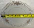Mac Beth Evans 8 Inch Opalescent Scalloped Edge Plate W/ Gold Floral Decal Pre-owned,Great condition.Plate glows under black light slight green glow from underneath plate. Measures 8 inches edge to edge x 1/2 inch high. ATTENTION REGARDING SHIPPING !! Shipping costs are expensive. Here is an offer that is hard to refuse. If you buy 2 or more items totaling $50 or more , I will handle the shipping cost (ground) anywhere in the continental United States. The items cannot be listed as having to be shipped alone due to SPECIAL PACKING NEEDS . eBay does not adjust the shipping cost removal from the invoice automatically. I can do it on the final invoice after you have the items in your shopping basket, before you pay. If eBay forces payment before that is done, you will receive a refund of shipping cost made before your package is shipped within the first business day following the transaction. The free shipping offer does not apply to Priority or Expedited shipping, although we can discuss a fair reduction in shipping cost should you desire the shipping upgrade.