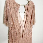 Mac Duggal Embellished Flutter Sleeve Gown Surplice Mesh Beaded Sequined Nude 14 New with tag, some beads are missing as pictured. Size: 14 Material: Polyester Stretch: No Care: Spot clean Closure: Concealed back zipper Style Notes: Embellished Mesh Fabric. Fully lined through body. V-neckline. Semi-sheer flutter sleeves. Tags: formal, evening, weddding