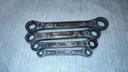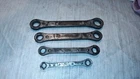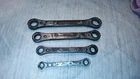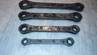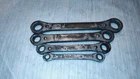 This 4-piece wrench set from Mac Tools USA is a must-have for any professional mechanic or DIY enthusiast. With sizes ranging from 3/8 to 7/8 inches, these patented ratcheting wrenches make tightening and loosening bolts a breeze. Made in the United States, these high-quality wrenches are perfect for anyone looking to add to their hand tool collection. Sellers note the wrenches come in used condition with some wear stains