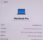 The MacBook Pro "Core i5" 2.3 13-Inch (Mid-2017 Retina Display, Two Thunderbolt 3 Ports) is powered by a 14 nm, 7th Generation "Kaby Lake" 2.3 GHz Intel "Core i5" processor (7360U), with dual independent processor "cores" on a single silicon chip, 64 MB of eDRAM embedded on the processor die, and a 4 MB shared level 3 cache. This notebook also packs 8 GB of onboard 2133 MHz LPDDR3 SDRAM (which could be upgraded to 16 GB at the time of purchase, but cannot be upgraded later), 256 GB of flash storage, and an integrated Intel Iris Plus Graphics 640 graphics processor that shares memory with the system. Externally, this notebook has an integrated 720p FaceTime HD webcam, a thin, backlit "second generation" butterfly mechanism keyboard, a gigantic "Force Touch" trackpad, a high-resolution LED-backlit 13.3" widescreen 2560x1600 (227 ppi, 500 nits) "Retina" display. This system also supports "Turbo Boost 2.0" -- which "automatically increases the speed of the active cores" to improve performance when needed ( up to 3.6 GHz for this model) -- and "Hyper Threading" -- which allows the system to recognize four total "cores" or "threads" (two real and two virtual).