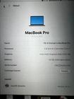MacBook Pro w/ Touchbar & 15.4" Retina Display 512 GB 2019 + plus accessories Processor 2.6GHz Core i7 (9750H) Color Silver, Space Gray Graphics Intel UHD Graphics 630 1536 MB Memory 16 GB 2400 MHz DDR4 Accessories included: Charging cable Clip on hard protective case Keyboard protector Privacy screen Soft carrying case Purchased in 2019 for school and no longer needed
