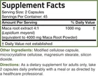 Department:MenShelf Life:2 yearsVolume:N/AWhen to Take:AfternoonType of Diet:VeganIngredients:Black MacaBrand:UnbrandedNumber of Pills:30/60/120FDA Registration Number:12397111146Main Purpose:Men's Health, Energy & Endurance, Testosteron BoosterSupply:1 Month and LongerMPN:N/Agtin13:Does not applyStorage:Keep in a cool, dry place and please sealingExpiration Date:02/2026Type:SupplementProduction Date:02/2024Dosage:1000 mgItem Weight:3.06ozFlavor:NeturalFeatures:All Natural, Gluten-Free, Organic, Non-GMOFormulation:CapsuleCountry/Region of Manufacture:UnknownActive Ingredients:Black Maca, Selenium, Black PepperUPC:Does not apply