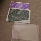 These came with the cases that I bought for my Macbook but just never used them. All are pretty much brand new & have never been used. The screen protectors haven’t even been taken out of the plastic that it came in. You will receive the 5 items shown in the pictures! ✅ • 2 green silicone keyboard covers • 1 purple silicone keyboard cover • 2 clear screen protectors for Macbook