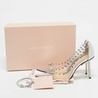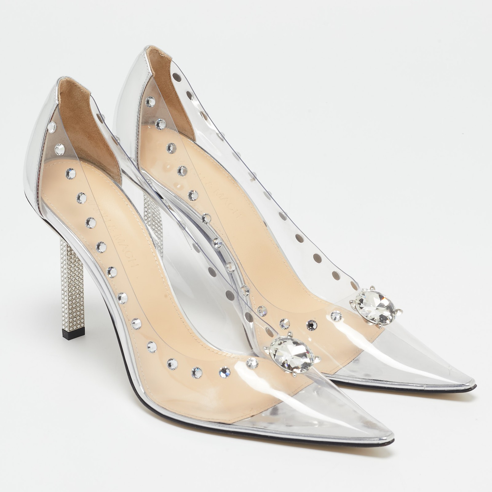 Mach and Mach’s Diamond Dreams pumps in transparent PVC and leather combine high fashion with a modern twist. The sparkling diamond embellishments on the upper outline add a glamorous touch, while the 10cm heels will lend you the perfect height.Certified by The Luxury Closet - This item has gone through a detailed authentication process overseen by our experts. We offer a lifetime guarantee of authenticity on all our items. Import duties, taxes and charges are not included in the item price. These charges are the buyers responsibility. Please check with your country’s customs office to determine what these additional cost will be prior to buying. Our eBay Store About Us Contact Us Add to Favorite Sellers Mach & Mach Transparent PVC and Leather Diamond Dreams Pumps Size 38.5 $510.4 Mach and Mach’s Diamond Dreams pumps in transparent PVC and leather combine high fashion with a modern twist. The sparkling diamond embellishments on the upper outline add a glamorous touch, while the 10cm heels will lend you the perfect height. Product Details Brand Color Transparent Dimensions Material Leather, PVC Size 38.5 Outsole Width 8 cm Outsole Length 26 cm Heel Height 10 cm Includes Original Dustbag, Original Box, Anklet, Info Booklet Certified by The Luxury Closet This item has gone through a detailed authentication process overseen by our experts. We offer a lifetime guarantee of authenticity on all our items. How We Check The in-house team of experts at The Luxury Closet is highly trained to verify the authenticity and the condition of the luxury products. They ensure that only 100% authentic items are put on sale.The evaluation process is unique with its own mix of assessment criteria and differs according to the category. Each item is evaluated based on the following combination of hallmarks, hardware, stitching, symmetry, material, craftsmanship, stamping, codes, hologram stickers, and packaging. Our authenticators also check if the items have been modified or amended (e.g., aftermarket diamonds, replaced batteries, repaired bags, etc.) International Buyers Import duties, taxes and charges are not included in the item price. These charges are the buyers responsibility. Please check with your country’s customs office to determine what these additional cost will be prior to buying.