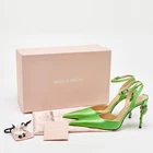 Our eBay Store About Us Contact Us Add to Favorite Sellers Mach Mach Green Satin Wonder Tulip Pointed Toe Ankle Strap Sandals Size 37 These sandals will frame your feet in an elegant manner. Crafted from quality materials, they flaunt a classy display, comfortable insoles & durable heels. Product Details Brand Mach & Mach Color Green Includes Original Dustbag, Original Box, Info Booklet, Heel Tip Outsole Length 28 cm Outsole Width 8 cm Size 37 Certified by The Luxury Closet This item has gone through a detailed authentication process overseen by our experts. We offer a lifetime guarantee of authenticity on all our items. How We Check The in-house team of experts at The Luxury Closet is highly trained to verify the authenticity and the condition of the luxury products. They ensure that only 100% authentic items are put on sale.The evaluation process is unique with its own mix of assessment criteria and differs according to the category. Each item is evaluated based on the following combination of hallmarks, hardware, stitching, symmetry, material, craftsmanship, stamping, codes, hologram stickers, and packaging. Our authenticators also check if the items have been modified or amended (e.g., aftermarket diamonds, replaced batteries, repaired bags, etc.) International Buyers Import duties, taxes and charges are not included in the item price. These charges are the buyers responsibility. Please check with your country’s customs office to determine what these additional cost will be prior to buying.
