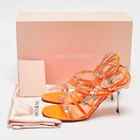 Our eBay Store About Us Contact Us Add to Favorite Sellers Mach Mach Neon Orange Patent Leather Crystal Bow Camille Sandals Size 38 The Mach & Mach sandals bring a burst of bold color and high-fashion glamour with their neon orange patent leather and crystal-embellished bows on the upper. The vibrant hue and luxurious design make them a show-stopping accessory for evening events or special occasions. Product Details Brand Mach & Mach Color Orange Includes Original Dustbag, Original Box, Info Booklet Outsole Length 22.5 cm Outsole Width 9.5 cm Size 38 Certified by The Luxury Closet This item has gone through a detailed authentication process overseen by our experts. We offer a lifetime guarantee of authenticity on all our items. How We Check The in-house team of experts at The Luxury Closet is highly trained to verify the authenticity and the condition of the luxury products. They ensure that only 100% authentic items are put on sale.The evaluation process is unique with its own mix of assessment criteria and differs according to the category. Each item is evaluated based on the following combination of hallmarks, hardware, stitching, symmetry, material, craftsmanship, stamping, codes, hologram stickers, and packaging. Our authenticators also check if the items have been modified or amended (e.g., aftermarket diamonds, replaced batteries, repaired bags, etc.) International Buyers Import duties, taxes and charges are not included in the item price. These charges are the buyers responsibility. Please check with your country’s customs office to determine what these additional cost will be prior to buying.