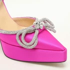 Our eBay Store About Us Contact Us Add to Favorite Sellers Mach Mach Pink Satin Double Bow Crystal Embellished Platform Pumps Size 40 Make a chic style statement with these designer pumps. They showcase sturdy heels and durable soles, perfect for your fashionable outings! Product Details Brand Mach & Mach Color Pink Includes Original Dustbag Outsole Length 27 cm Outsole Width 9 cm Size 40 Certified by The Luxury Closet This item has gone through a detailed authentication process overseen by our experts. We offer a lifetime guarantee of authenticity on all our items. How We Check The in-house team of experts at The Luxury Closet is highly trained to verify the authenticity and the condition of the luxury products. They ensure that only 100% authentic items are put on sale.The evaluation process is unique with its own mix of assessment criteria and differs according to the category. Each item is evaluated based on the following combination of hallmarks, hardware, stitching, symmetry, material, craftsmanship, stamping, codes, hologram stickers, and packaging. Our authenticators also check if the items have been modified or amended (e.g., aftermarket diamonds, replaced batteries, repaired bags, etc.) International Buyers Import duties, taxes and charges are not included in the item price. These charges are the buyers responsibility. Please check with your country’s customs office to determine what these additional cost will be prior to buying.