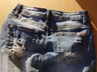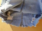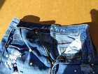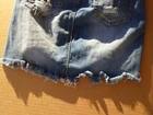 Machine Nouvelle Mode denim jean Skirt mini Juniors Size S 26 Distress w/pearls.