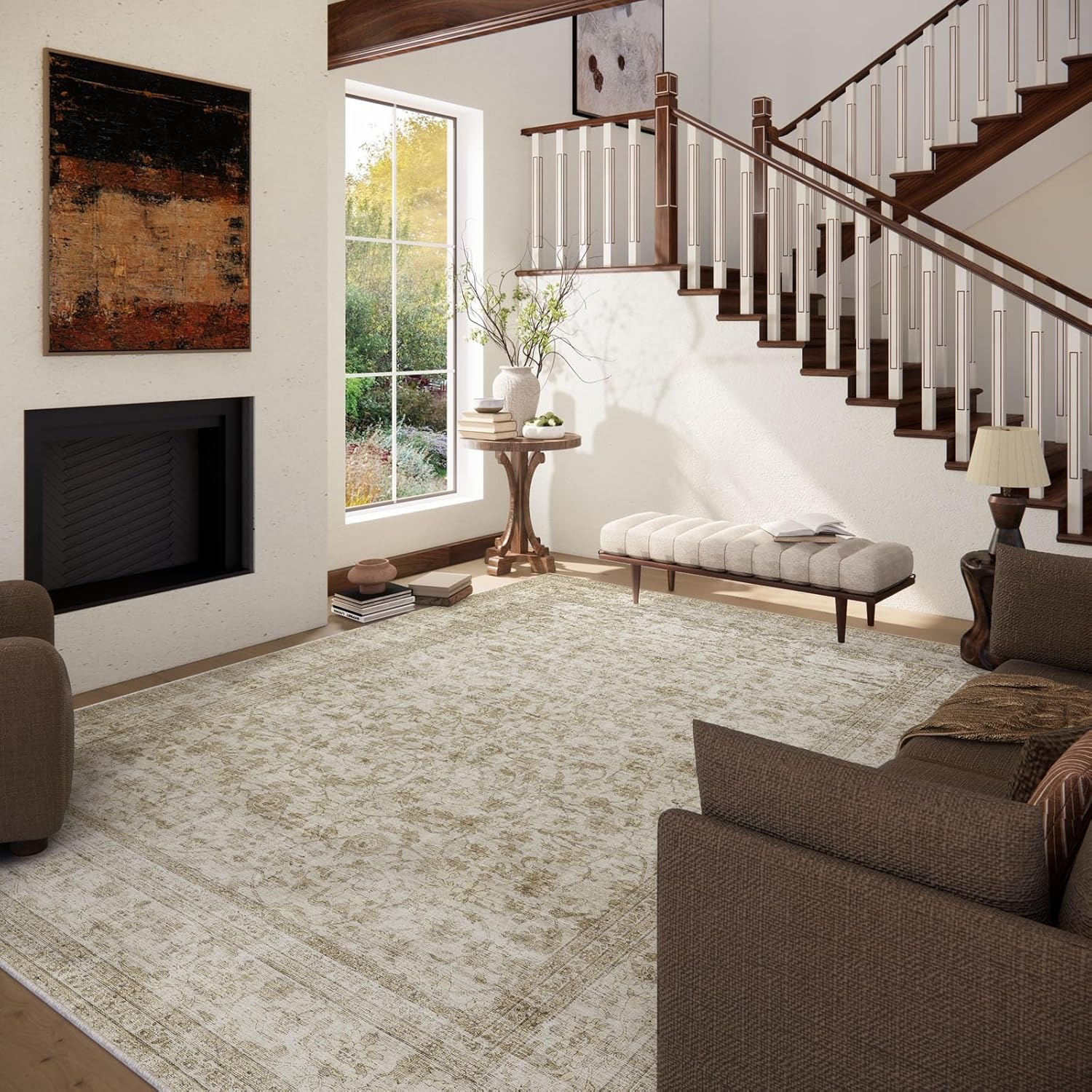 $ 43.3Washable 5X7 Area Rug for Living Room Beige Neutral Vintage Large Rug Non-Slip S