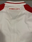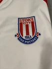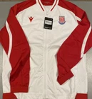 Show off your love for Stoke City with this stylish Macron home walk out jacket. The white and red color scheme is perfect for displaying your team pride, while the unisex adult size ensures a comfortable fit for all fans. This officially licensed jacket is made in Italy and features the Macron brand, known for their high-quality sportswear. Perfect for soccer enthusiasts, this jacket is a must-have for any Stoke City fan. Wear it to the game or out and about to show your support. The product is brand new and in excellent condition, making it a great addition to any fan apparel collection. Get your hands on this unique jacket today!