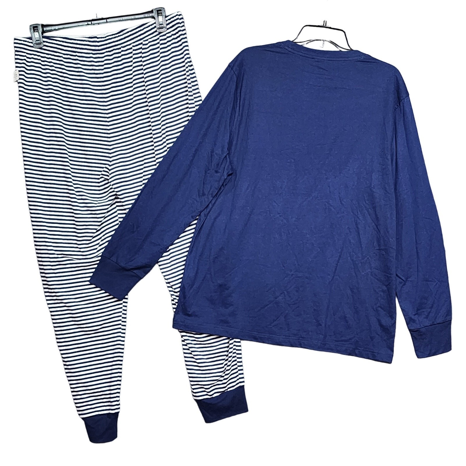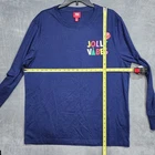 Macy's Christmas Holiday Family Pajamas Men's Jolly Vibes Striped Pajamas Set XL Long Sleeve Pullover Top with Scoop neck Jolly Vibes graphic print at front Elastic drawstring waist bottoms with contrasting cuffed ankles Material is similar to a t-shirt material. New with tags. Paper hang tag may be torn or have tape or stickers attached/detached Inv# 11-002