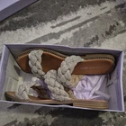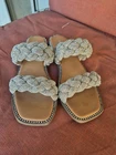 The Madden Girl Rhinestone Braided Strap Slide Sandals in Silver are a stylish and trendy choice for women in size 8.5. These sandals feature a slip-on closure and a flat heel, making them comfortable for all-day wear. The braided straps add a touch of texture while the rhinestone accents give these sandals a touch of glamour. Perfect for any casual summer outfit, these sandals are a fashionable addition to any wardrobe.